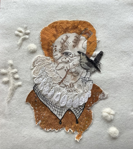 2023Hand geborduurd portret op gaas en wolvilt.