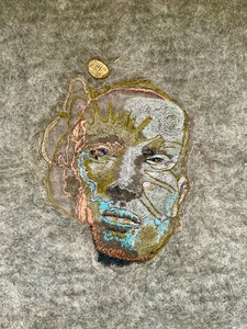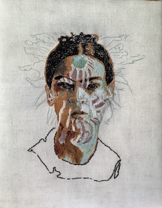 2022Handgeborduurd portret op wollen doek.