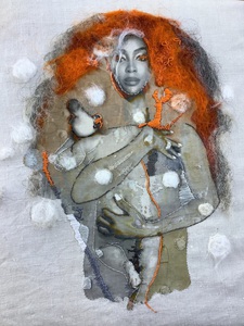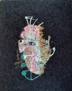 Digitaal bewerkte foto, transfer, handgeborduurd en naaldvilt.