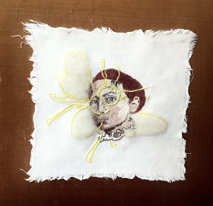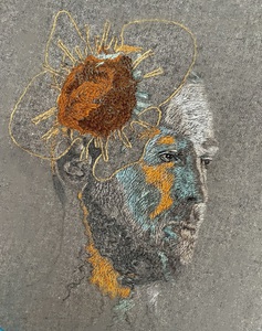 Digitaal bewerkte foto, transfer, handgeborduurd en naaldvilt.