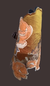 2022Mono print, dubbele stoflaag, hand geborduurd. Geinspireerd op het boek, "de kaalvreter" van Machteld Siegmann. De hoofdpersoon is Leie. Al luisterend naar het verhaal kreeg het werk deze vorm.