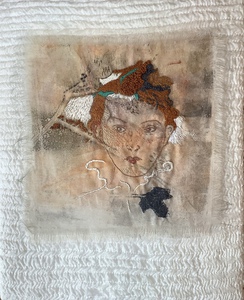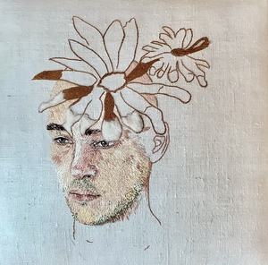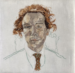 2022Handgeborduurd portret, machinaal gestikte achtergrond, mohair, zijde, katoen, polyester