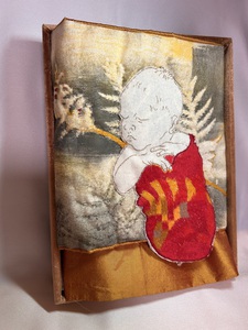 2023Fluweel doosje met geborduurd en ingebakerd baby figuur.